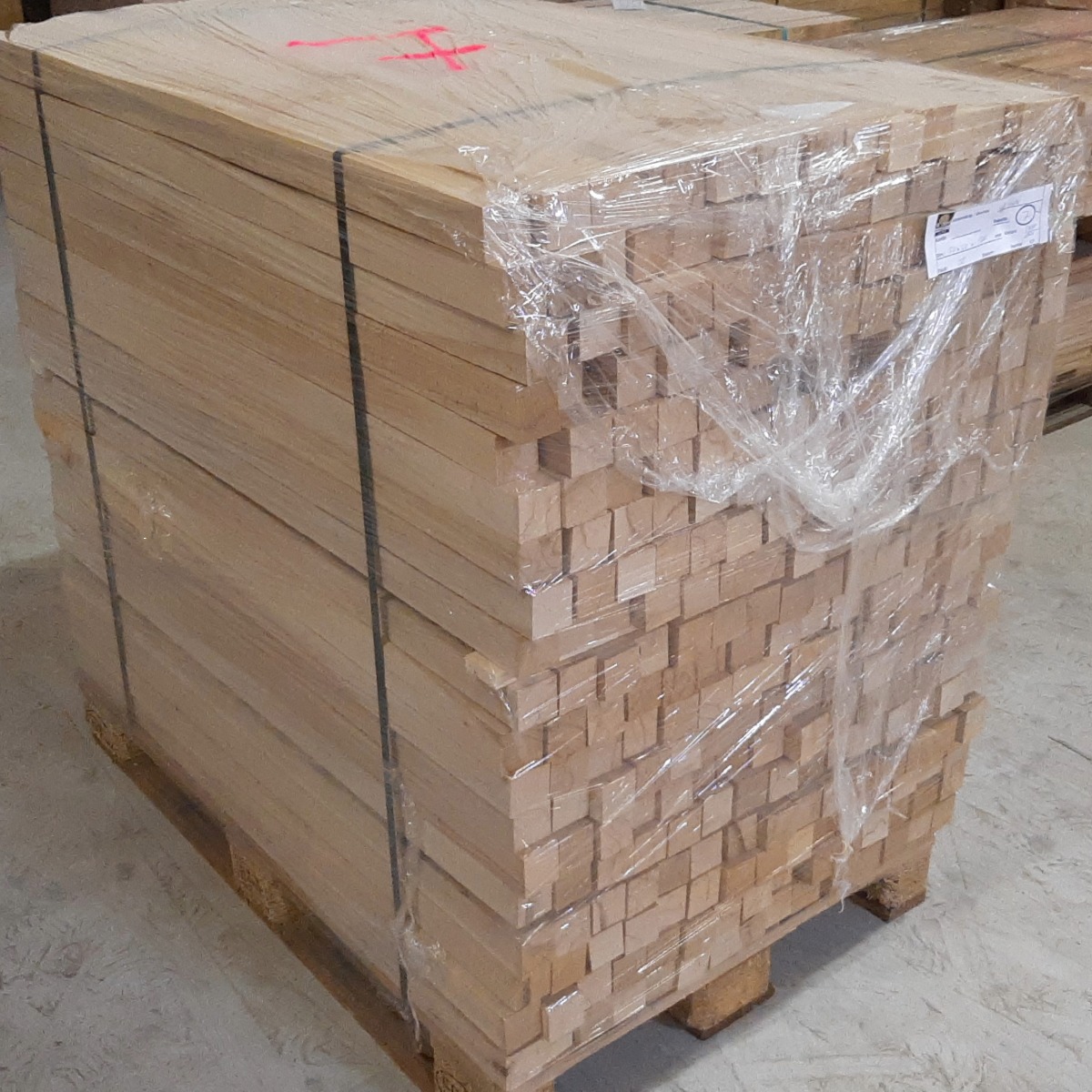 gebogene Sesselteile, gehobelte / profilierte Zuschnitte, Parkettfriese, Landhausdielen, Stiele, Werkzeughölzer und vieles mehr. Die Vielseitigkeit der gesamten Anlage ermöglicht die Verarbeitung von stark unterschiedlichen Sortimenten. So können Stärken bis 120mm und Längen bis 4000mm zu Zuschnitten veredelt werden. Das wertvolle Laubholz wird von geschultem Fachpersonal auf einer Kappanlage längenoptimiert und anschließend mit einer Vielblattkreissäge zum Beispiel zu Lamellen aufgetrennt. Bei der anschließenden Sortierung werden verschiedene Qualitäten unterschieden und auf Paletten gestapelt. Die fertigen Zuschnitte können auf Wunsch auch gehobelt oder profiliert werden. Der Rest wird zu ofenfertigem Brennholz zerkleinert, welches für die Beheizung von Kachelöfen oder ähnlichem sehr geschätzt ist.